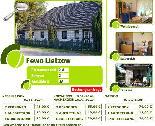 Die Nichtraucherferienwohnung ist im 2000 gebautem Familienhaus integriert und liegt direkt am Kleinen Jasmunder Bodden. Sie ist gemütlich und modern eingerichtet, ca. 37qm groß und bietet Platz für 2 bis 4 Personen. Im hellen, großzügigen Wohnraum mit Pantryküche, Esstisch und gemütlichem Wohnbereich, mit direktem Zugang auf die Terrasse und den Garten, können Sie Ruhe finden und ihren Urlaub genießen. Das 50m entfernte hauseigene Ruderboot, lädt zu einem Ausflug auf den Kleinen Jasmunder Bodden ein. TV-Sat, WC/Dusche, |